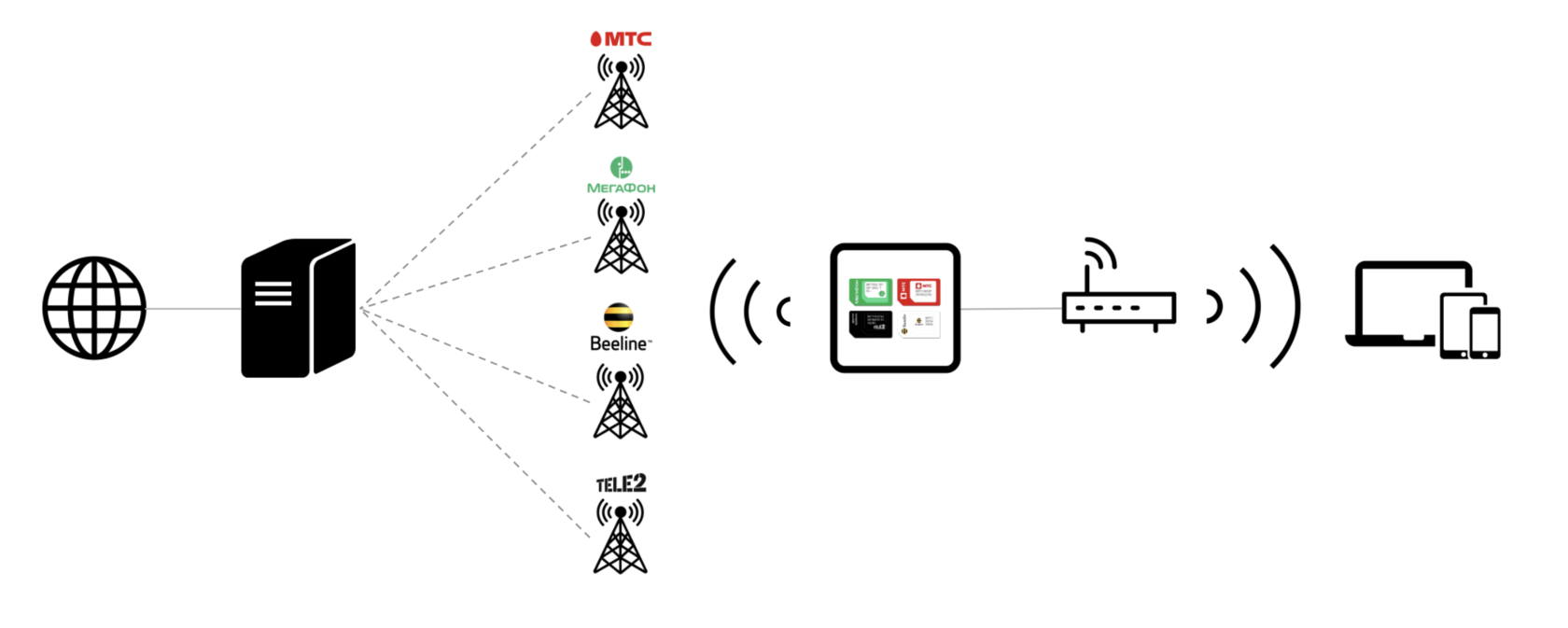 Device combines the LTE traffic from several SIM cards at once